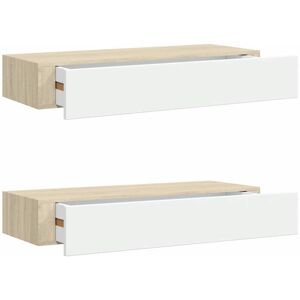 Introduce a touch of elegant charm into your interior decor with these compact drawer shelves! Crafted from MDF and metal, this floating shelf is built to last. The wall-mounted shelf with a drawer can store small items such as jewelry, watches, wallets, keys, etc. It adds design and style to different living rooms and gives them a bright feeling. Colour: Oak and white Material: MDF, metal Dimensions: 60 x 23.5 x 10 cm (W x D x H) Drawer dimensions: 49.5 x 18 x 5.5 cm (W x D x H) Maximum load capacity (each): 10 kg Includes mounting materials Assembly required: Yes Delivery contains: 2 x Drawer shelf SKU: 330264 EU responsible party Haba Trading B.V. Mary Kingsleystraat 1 5928SK Venlo The Netherlands Compliance-safety@vidaxl.com