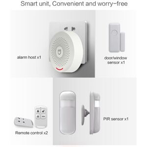 The home burglar alarm kit includes motion sensors, door sensors, remote controls and SOS button accessories, You can freely match according to the size and needs of your family, including a one-touch SOS secret call, which can be given to the elderly and children with a rope, and you can receive their "help" in time! Just the button Support 2.4Ghz WiFi network alarm supports APP push to stable and reliable alarm performance. The wireless home alarm kit has an elegant and exquisite appearance. White meets the simple European style; plug and play, , and can be carried around; WiFi network alarm supports APP push to stable and reliable alarm performance; with wireless sensors, low battery voltage alarm function; support voice commands; Support for and for Tuya wireless home burglar alarm not destroy your home decoration style and not damage your walls; built-in powerful CPU, based on 32-bit -M3 core, supports Tuya application remote control Voltage: AC220V Plug Type:EU Plug,it applies