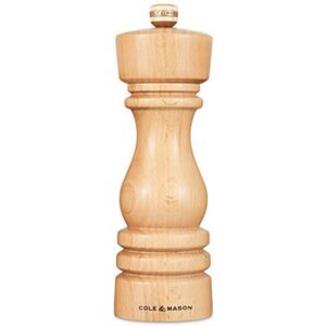 Season with confidence with the Cole & Mason London 18cm Natural Beech Salt Mill. Crafted from high grade beech wood with a gold tone knob, this London mill is inspired by the beautiful, Art Deco and industrial British architecture that can be found throughout the city of London and honours both Cole & Mason's heritage whilst looking to the future with its classic, yet contemporary aesthetic. Its timeless design would make a stylish addition to both modern and traditional kitchens. The grind can be easily adjusted from fine through to coarse simply by turning the knob on the top of the mill. Select a fine grind for a big punch in soups and sauces or select a coarser grind for a subtler, but longer lasting taste - great for steaks and salads. The sharp, anti-corrosive ceramic grinding mechanism achieves a high-quality output and consistent milling, time after time. The London mill is super easy to refill. Simply unscrew the knob and remove along with the mill top. To make refilling even easier, use the Cole & Mason Dover Stainless Steel Funnel which is available separately. This London salt mill from Cole and Mason is easy to clean, simply wipe with a damp cloth and use a clean cloth to dry. London natural beech salt mill dimensions: H18cm x Dia5.8cm. Weight: 0.22kg. The mill is supplied unfilled. To complete the set, a matching Cole & Mason London 18cm Natural Beech Pepper Mill is available separately. The Cole & Mason London 18cm Natural Beech Salt Mill is supplied with a 2 year manufacturer's guarantee and a lifetime mechanism guarantee.
