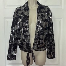 Dusk Womens Sequin Tie Front V-Neck Stretch Top - Metallic - Size 18 Uk