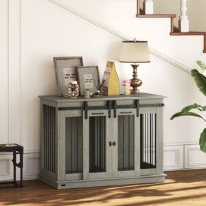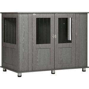 A dog cage where everyone benefits pets have a safe and comfortable space to relax, whilst you have a stylish table top to display your favourite pieces. Pets will enter through the front or side door, where they'll lay on the soft, washable cushion, whilst the steel wire lets air flow through to keep them cool the lockable doors ensure they're secure. A particle board structure, this durable cage has four adjustable feet, keeping it solid and stable a piece for all to enjoy. Soft cushion included. Can be used as a nightstand or side table, as well as a dog crate. Display your favourite pieces on the spacious table top. Front and side doors for easy access. Steel wires keep their space ventilated also lets them look out. A latch keeps pets securely inside. Adjustable feet protect your floor. Suitable for large dogs up to 30kg and 60cm in body length. Assembly required. Colour: Grey and black. Material: Steel, particle board, plush and spray adhesive cotton (100% polypropylene). Dimensions: 71.5H x 94W x 60Dcm. Inside cage: 63H x 90W x 57Dcm. Single door: 50.5H x 44Wcm. Cushion: 90L x 56W x 5Dcm. Leg height from the ground: 4cm. Side mesh grid: 13L x 8Wmm. Item label: D02-132V71GY PawHut