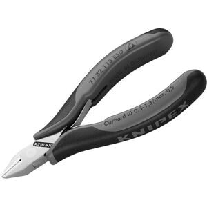 77 32 115 ESD Electronics Diagonal Cutters ESD Durable, load-optimised design with backlash-free box joint. High, slim sleeves for fine and comfortable gripping between thumb and index finger. Less physical effort due to very high transmission ratio. Load-optimised for a more direct feel when working. Low-friction double spring for smooth and even opening. The mirror polish in combination with a fine oil film provides rust protection - no circuit faults caused by peeling chrome from plated tools. Cutters additionally laser hardened, cutter hardness at least 62 HRC. pointed head, with small bevel. - Cutting capacities medium hard wire (diameter): Ø 1.0mm- Cutting capacities hard wire (diameter): Ø 0.5mm- Cutting capacities soft wire (diameter): Ø 0.3 – 1.3mm- Jaw length (B): 14mm- Jaw thickness (joint) (D): 7mm- Head width (A): 11mm- ESD: yes