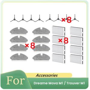 Comprehensive Compatibility: Designed specifically For M1 / Trouver M1, this kit ensures a perfect fit and function for your robotic vacuum. Complete Package Contents: This kit includes 8 x side brush 8 x filter 8 x Mop Cloth, providing a full range of maintenance supplies. Maintenance Recommendations: To maintain optimal, it's advised to clean the regularly and replace every 1-2 months, depending on usage frequency. This routine ensures your vacuum operates at efficiency. Premium Construction: Made with high-grade materials, this part not only promises but also guarantees robust performance under various operating conditions. It's an essential upgrade for anyone looking to maintain their appliance in top condition. Simple Installation Process: designed for hassle-free installation without the need for additional tools. The user-friendly design allows for quick and easy replacement, making maintenance a breeze and saving you time. Model:For M1 / Trouver M1 Function:Cleaning Colour:As