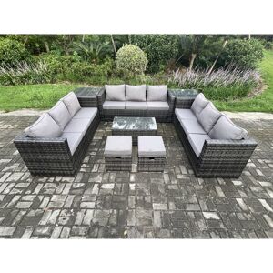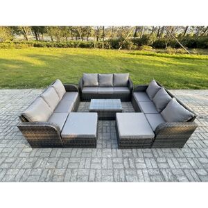 This deluxe Fimous Garden furniture sets add decor to your patio, deck, backyard, porch, and even pool. It is easy to combine into different configurations according to your needs at any time. Place the 2 small footstools under the table when not in use will make the space look clean and tidy. Set Dimensions: 1 x Big footstool 65L x 65W x 34H cm; 2 x Fully Assembled small footstools:40L x 40w x 34H cm; 2 x Reclining Chairs: 74L x 67W x 79H cm; 2 x 3 seater Sofa Size: 177W x 67D x 79H cm; 1 x Oblong Coffee table: 105L x 50W x 48H cm; Dark grey mixed rattan with dark grey fabric .Color may some difference due to light or monitor .we are unable to return the item due to color problem . The 2 armchairs are adjustable, you can adjust the inclination of the chair back from 90-130 through the button .the product is delivered on pallet, to kerbside only. " Fimous 11 Seater Wicker PE Rattan Sofa Set Outdoor Patio Garden Furniture with 2 Reclining Chairs Coffee Table 3 Footstools Dark Grey Mixed
