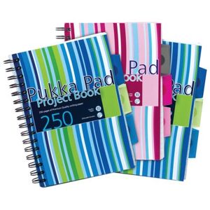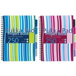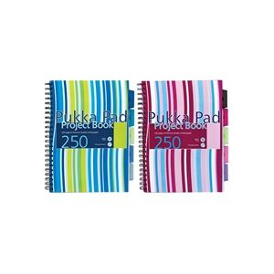 This smart Pukka project book contains 250 pages of high quality 80gsm paper and features 5 removable dividers for organising your notes. The white pages are feint ruled for neat note-taking and perforated for easy removal. The durable notebook features black polypropylene covers and a wire binding, which allows it to lie flat for easy note-taking. This pack contains three A4 project books.