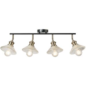 The Zeke 4 Light Industrial Style Ceiling Spotlight Bar in Black is a practical lighting addition without compromising on style. This adjustable spot bar would look ideal above a dining table or breakfast bar. The slender design of this fixture promotes a minimalistic aesthetic, whilst the brass accents add an industrial touch to your home. Product Type: Spotlight Bar Bulbs Required: 4 (Not Included) Bulb Type: E27 Edison Screw Max Bulb Wattage: 10 Watt Max Bulb Voltage: 240 Volt Light Source: LED Height: 23 cm approx. Width: 30 cm approx. Length: 82 cm approx. Ceiling Cap Diameter: 10 cm approx. Drop: 30 cm approx. Material: Metal, Glass Colour: Antique Brass, Black Technical Information Weight: 2.05 kg