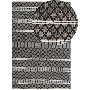 Modern Flat Weave Rug. Enrich your surroundings with this modern area rug. Made from genuine leather pieces, connected with natural cotton thread, it's exceptionally easy-care and durable so that it withstands years of usage. This hand-loomed rug will surely introduce a chic vibe to your bedroom, lounge or dining area. Details: Product Type: Flat Woven Style: Traditional General Color: Black, Beige Material Type: Real Leather Main Material: Leather Additional Material: Cotton Shape: Rectangular Anti-Slip Bottom: No Pattern: Abstract Pattern Suitable for Underfloor Heating: No Weaving: Handmade Dimensions: Pile Height: 1.2 cm Width: 140 cm Length: 200 cm Weight: 3 kg Offer Includes: 1 x Rug Key Features: Hand-Crafted with High Attention to Detail, Works Great with Many Interior Styles, Modern Design, Striking, Highly-Decorative Pattern, High Quality, Easy Care and Durable Materials, Modern Look and Quality for Many Years Assembly Information: Does Not Require Assembly Additional