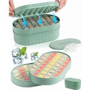 【Tray; ice cubes 【Easy Release】: This freezer ice cube tray is designed with an innovative release design, which makes it easy to release the ice cubes. Just press a button to easily release 64 square ice cubes from 1*1 inch to 1 inch. that time. An update revolutionary level compared to the containers. traditional ice cubes for making, releasing and storing ice cubes. 【Innovative Version Ice Cubes】This is a new ice cube tray. icicles that we designed this year, our idea was to facilitate the release of ice trays. ice cubes with lid. It is different from the baking pan. traditional ice cubes. If you want to try something different, you can try this one. 【What You Will Receive】: The package contains two ice cube trays. 32 pieces green ice cubes each, a transparent container and a transparent lid, and a ice shovel. ice. You can store the ice cubes with the transparent container. Simply place the tray ice cubes upside down on the tray ice cubes, close the lid and press the button to