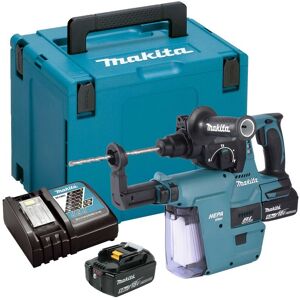 Makita DHR242 replaces the BHR242. Features of the DHR242 The DHR242 tool body is separated into the upper and lower housings at the foot of handle portion where the housings are jointed with vibration absorbing cushion rubbers. Higher productivity than model BHR202 achieved by using efficient Brushless DC motor to reduce energy loss by 30% Unique rubber joint construction suppresses the transmission of vibration to battery terminals, minimizing battery failures such as terminal breakage or poor electrical contact. Able to drill in concrete as fast or faster than 24V Cordless Combination Hammer model BHR200. One touch slide chuck for SDS-plus bit. Easy-to-grip handle ergonomically designed to: Give maximum power thrust. Provide a sure and comfortable grip in any operation; overhead application, drilling with palm-up or palm-down grip. 3 mode operation: Rotation + Hammering Hammering only Rotation only The DX01 is designed to collect dust effectively with automatic operation from the