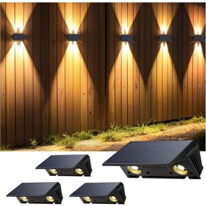 🌞SOLAR GARDEN LAMP - 4 outdoor solar garden lights that recharge with the sun, so remember to orient them correctly for a good charge. They turn on by themselves at nightfall, provide a nice light with a soft warm white ambiance, and they also turn off by themselves at dawn. The outdoor solar wall light is equipped with a button to turn it on and off, and another to change the lighting direction. ✨MAGNIFICENT LIGHTING - The solar outdoor wall light can be set to warm white. The nighttime rendering is magnificent. It is 100 lumens and 3000k. They are very pretty! Solar outdoor lights are very bright! Solar outdoor lighting features a modern look with four LED lenses that can be used for uplighting, downlighting, uplighting only, or downlighting only. ☔SMALL AND POWERFUL - Small lamp but big on light! The powerful outdoor solar light is equipped with a super large solar panel of 12.1cm x 8.1cm. Outdoor solar light charges for 4-6 hours in sunny weather and can work for 10-12 hours at