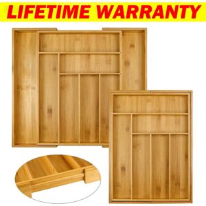 BRIEFNESS Bamboo Cutlery Tray Expandable Drawer Organiser Storage Compartment Utensil