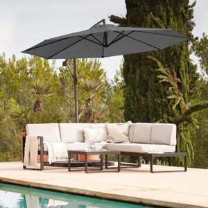 Extend your living space outdoors with the sleek and stylish Maia Garden Corner Sofa Set. Featuring a modern black aluminium frame, wood-effect slats, and complementing cream cushions, this 5-seater outdoor sofa set brings a clean, contemporary look to your garden, patio, or terrace. Designed for both relaxation and entertaining, the interchangeable corner design allows you to configure the set to suit your space. Paired with a cream lean-over parasol, this set offers shade and comfort—creating the perfect environment for al fresco lounging all season long. Whether you're enjoying a sunny afternoon with family or hosting an evening with friends, the Maia outdoor set offers a stylish, functional centrepiece for any outdoor setting. Latitude Run Umbrella Colour: Grey