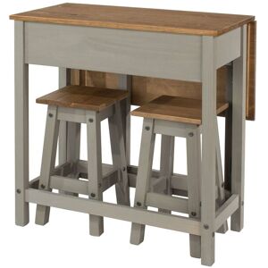 Corona furniture is such a popular choice, even more so in our Grey wax finish. Retaining all the characteristics that Corona is renowned for, but in with a subtle grey colouring that allows the natural grains and textures of the real wood to show through. Made entirely from responsibly sourced South American pine, featuring quality real dovetail drawers, mortice & tenon door frames and natural wood interiors. This grey breakfast set includes two sturdy stools that can be tucked neatly away under the take for space saving, alongside a drop leaf table which can be either open or closed. Size = (W) 80cm (D) 40-72cm (H) 84cm.
