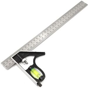 Material: The stainless steel square angle ruler and angle bracket are made of aluminum alloy, anti-rust, durable and no deformation. Size: approx. 300 x 120 mm High-precision manufacturing: Adopt laser technology for high-precision manufacturing, double-sided ruler in mm and cm graduations. Embossed graduation for easy reading and durability. Multi-dimensional measurement: Can realize level measurement, 90° angle measurement, 45 degree angle measurement. Can be used as a miter gauge, height or depth at 45 degrees. Bubble levels: Combined with a level bubble, accurately measure the balance to help improve work efficiency. Come with a built-in scriber that allows easy marking without a pen.Application: Suitable for measuring, marking, laying out, etc.Features: 300mm (12") Combination Square Die-cast stainless steel body and aluminum alloy corner bracket, wear-resistant and durable. Use laser manufacturing, ensures high accuracy. Come with a spirit level and a scriber to improve work