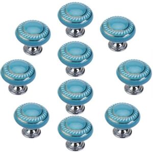 [High Quality Ceramic] These blue round cabinet knobs are well made of good quality ceramic and zinc alloy. It is very solid and not easy to fall apart. [Elegant Design] The blue ceramic round cabinet knobs designed in simple and elegant retro style make this cabinet perfect to decorate most furniture and add a touch of luxury to your kitchen, bedroom and bathroom cabinets. [Mounting Screw Installation] It is quite easy for you to install these decorative ceramic knobs, just drill a hole in the cabinet and tighten with a screwdriver. [Product Size] Screw Length: 0.98 inch (suitable for drawer plate with thickness less than 0.78 inch); Knob Height: 1.18 inch (30 mm); Knob Diameter: 1.38 inch (35mm). Color: Blue Material: Ceramic, Zinc Alloy Package Contents: 10 x Pull Handle 10 x Screws Only the above package content, other products are not included. Note: Light shooting and different displays may cause the color of the item in the picture a little different from the real thing. The