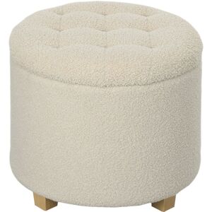 Not just a soft and comfortable piece to sit on when needed, this HOMCOM ottoman gives you handy storage for smaller items. Beneath the button-tufted lid is a 40.5L compartment, suitable for blankets, books and bits and bobs, keeping your space clutter-free. It's wrapped in teddy fleece, with a cushioned top for plenty of comfort when you sit on this piece. Bedroom storage ottoman is complete with supportive wooden legs. HOMCOM 45cm Round Ottoman with Storage, Lid, Cashmere Footstool, Cream White