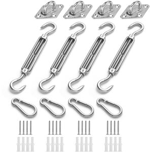 High quality: Made of high-quality stainless steel for installing shade sails, durable, rustproof, sturdy and safe. Set: Includes 4 wall brackets, 4 carabiners, 4 tension screws and 16 screws, suitable for all awnings. Practical: The awning fixing set is easy to use and perfect for most shade sails for hanging the awning safely and easily. Perfect tension: The tension screws ensure optimal tension for the awning.