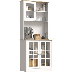 "Take the effort out of organising your home with this free standing kitchen units from HOMCOM. Pure white in finish to brighten up your home instantly, thick MDF frame for a structure which is tough against everyday use, with a smooth coating all over protection against light marks. Generous in size, the kitchen dresser features different storage compartments – a large bottom cabinet with middle shelf, a middle countertop, a small top cupboard with an adjustable shelf and two top small shelves. Specifications: • Color: White and Oak • Material: MDF, Glass • Overall Dimensions: 80L x 37W x 183Hcm • Top Cabinet Door Panel Size: 36.5L x 49Hcm • 3 Rows of Adjustable Holes with 6cm Hole Distance (Cabinet Shelve) • Bottom Cabinet Singe Door Size: 37L x 73Hcm • Middle Countertop Shelf Size: 80L x 37Dcm • Metal Handle Size: Φ2.5 x 2Hcm • Net Weight:16.8/18.5kg • Total Weight Capacity: 80kg • Shelf Weight Capacity: 10kg • Certification: E1 • Flat Pack: Yes • Custom Label: 835-209V01 Just so