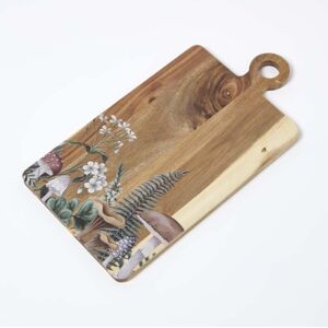 Specifications : Brand : Homescapes Colour : Natural, Multi Colour Size : 45 x 25 cm Material : 100% Acacia Wood Care Instructions : Hand Wash Only - Do not Soak Pack Includes : 1 Serving Board Stylish wooden serving board, food-safe and featuring an elegant mushroom design. Perfect for styling your home, in every season. A multi-functional wood serving board that can also be used as a charcuterie board or for serving snacks at any home event. Made from fine acacia wood, this durable natural wooden board is a must-have for any occasion. Pair with our range of wooden kitchen accessories or kitchen linen for the perfect housewarming gift. Each food-safe acacia wood board measures 45 x 25cm with a thickness of 1.5cm. Looking to make a serving board for a special occasion? Pair with our range of 100% cotton napkins for an elegant look. Hand wash only.