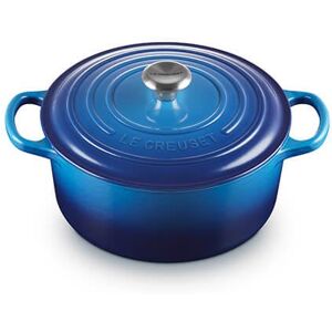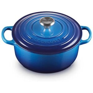 The iconic Le Creuset Signature Azure Cast Iron 20cm Casserole is perfectly designed for stews, casseroles, roasts, soups and baking. Make mouth-watering and memorable meals that are full of intense flavour in this one-stop pot. ADVANCED SAND INTERIOR ENAMEL - durable, easy to clean and specifically engineered to resist staining with a higher resistance to wear and tear. Significantly improves durability and performance, being 35-40% more resistant to thermal shock and 16% more resistant mechanical shock (chipping from utensils). It is also more resistant to acid attack and 24% more resistant to enamel erosion. There is less absorption of food colours and it is more durable against repeated dishwasher use as well as being 45% easier to clean. LARGE HANDLES - easier to grip and lift when full, even when wearing oven gloves or mitts. ERGONOMIC STAINLESS STEEL KNOB - stylish and durable brushed stainless steel finish. Easy, comfortable and natural grip, suitable for all temperatures. ENGINEERED LID - tight fitting with built in stabilisers for enhanced moisture lock in and flavour, during cooking. Handcrafted at the Le Creuset foundry in northern France since 1925, Le Creuset casseroles are made from premium quality cast iron ensuring each product is beautifully finished and long lasting. A true kitchen essential, the cast iron round casserole is not only perfect for making casseroles, stews and one pot roasts, but is versatile enough for baking cakes and bread. Le Creuset cast iron cookware also works efficiently at low to medium cooking temperatures and retains heat effectively, ensuring food stays warm for longer. Le Creuset cast iron casseroles are suitable for all hob types (including ceramic, halogen, induction, gas and oil or wood) and are also oven and grill safe. Dishwasher safe, although hand washing is recommended. The Le Creuset 20cm round cast iron casserol e is ideal for 2-3 people and has a capacity of 2.4L. Dimensions: L27.3cm x W21.5cm x H14.1cm. Weight: 3.09kg. This Le Creuset Signature Azure Cast Iron 20cm Round Casserole is supplied with a manufacturer's lifetime guarantee.