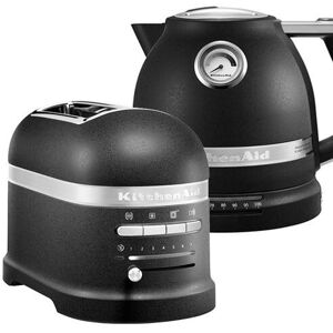 Each item in the KitchenAid Artisan kettle and toaster set in almond cream features a distinctive retro exterior featuring curved edges, elements and polished accents that are instantly attention-grabbing. Designed to make a statement each item in the set is equipped with the latest features and functionality for the modern kitchen. Choose from a selection of popular, best-selling colours. Product Features (Kettle) Model: 5KEK1522BAC Colour: Almond cream A large 1.5-litre capacity is ideal for larger households Retro curved exterior suits any type of kitchen Variable temperature lever from 50°C to 100°C Dual wall construction that reduces noise and keeps water hot for longer Temperature dial that works when removed from its base Full specifications and technical data - here Includes a 5-year guarantee Product Features (Toaster) Model: 5KMT2204BAC Colour: Almond cream Retro curved exterior suits any type of kitchen Includes 2 extra-wide slots for different types of bread 7 shade settings with an LED countdown timer for perfect results Sandwich rack and function for delicious toasted sandwiches Bagel function; toasters the inside while warming the outside Frozen function; gently defrosts and toasts frozen bread Full specifications and technical data - here Includes a 5-year guarantee