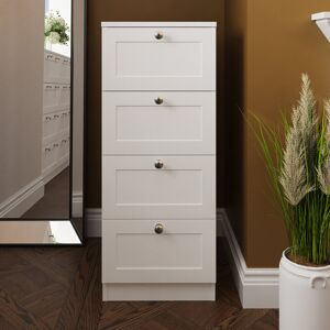 Artus Shaker 4 Drawer Chest Of Drawers Matt White Introducing the Artus Shaker 4 Drawer Chest Of Drawers in Matt White, a perfect blend of sophistication and practicality designed to enhance any modern bedroom. The elegant matt white finish provides a subtle, refined elegance that resists fingerprints and glare, ensuring a consistently sleek appearance that complements the contemporary vibe of any room. Shaker Style Framed Fronts add a touch of traditional charm to the contemporary design, enhancing the overall aesthetic of your furniture. These classic frames make it a timeless addition to your home decor. Brushed Chrome Knob Handles provide a modern touch and easy access, complementing the sleek design of the chest. These stylish handles make it effortless to open and close the drawers. New Deeper Drawers boast 14cm deep compartments, surpassing competitor offerings. This chest provides expansive storage space for a diverse range of items, ensuring enhanced organization and accessibility in your home. Durable and Scratch Resistant, this chest of drawers is built to resist everyday wear and tear. The robust construction ensures that it maintains its appearance over time, providing long-lasting beauty and functionality. Easy Care Instructions: This chest requires minimal maintenance. Simply wipe it clean with a soft cloth and avoid harsh chemicals to keep it looking its best. Flat Pack: For your convenience, the chest is delivered flat-packed with easy DIY assembly instructions and fittings provided. Product Dimensions: Height: 99cm Width: 40cm Depth: 40cm Weight: 28kg Transform your bedroom with the Artus Shaker 4 Drawer Chest Of Drawers in Matt White, a perfect combination of style, functionality, and durability. Order now and experience the elegance and practicality it brings to your home. 17 Stories