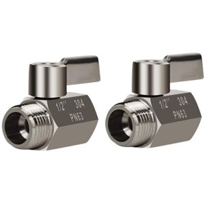 FITMENTS: Standard 1/2 inch, NPT - and male connections, compatible with most common shower head connectors in North America. FUNCTIONS: This stainless steel ball valve of shower head shutoff valve, RV shower shutoff valve or adjustable water saving valve, which is also widely used in , bathroom, kitchen, camper, motorhome, etc. RELIABLE & LEAK PROOF: This shower shutoff valve by one-piece construction and has a blowout-proof stem to reduce leakage and damage of the valve. MATERIAL: This shower head shutoff valve made of 304 stainless steel body and ball with much higher performance (high heat resistance, high corrosion resistance and pressure resistance), more and harder than that made of brass and ordinary plastic. EASY TO USE: A long stainless steel handle and a On/off switch with quarter turn are designed on this shower shut off valve, which made the nozzle easy to turn and control the flow easily! NPT Type: Thread x Male Size: About 50mm in length Material: 304 stainless steel