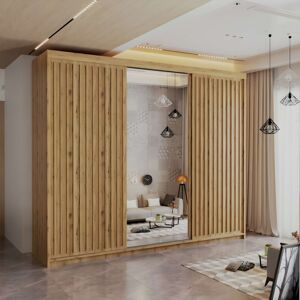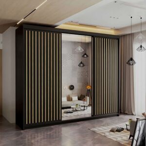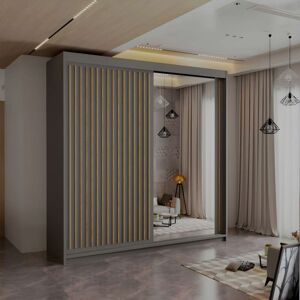 Royal 2 & 3 Door Sliding Wardrobe with Mirror & Modern Bedroom Storage Elevate your bedroom with the Royal Sliding Wardrobe – a perfect blend of contemporary design and intelligent storage. Crafted from high-quality MDF with a durable laminated matte finish, this wardrobe features a sleek, modern aesthetic with full-length mirrored sliding doors , enhanced by stylish strip variations. Available in three versatile sizes to suit any space – 150cm, 203cm (2 doors) and 250cm (3 doors). Every size offers a custom interior layout combining shelves, hanging rails , and drawers (in 250cm only), ensuring your clothes and accessories are stored with ease and style. Choose from four contemporary colors to match your interior décor: White, Black, Grey, Oak , with strip variations in White/Grey, Black/Oak, Oak/Oak, Grey/Oak . Whether you're organizing a compact room or a spacious master suite, the Royal wardrobe fits beautifully while providing seamless, space-saving sliding access. Size
