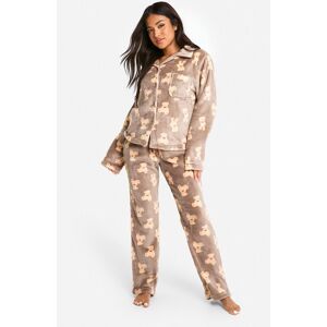 Boohoo Womens Petite Bear Print Fleece Cami Top & Wide Leg Trousers Lounge Set - Cream - Size 10 Uk