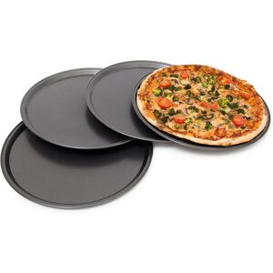 This pizza pan set includes 4 round baking sheets for making pizzas and other baked goods! The round shape of the trays makes them ideal for baking pizzas and allows them to fit in almost all stoves and sinks. Plus, the non-stick coating makes the trays extremely easy to clean. These carbon steel pizza pans are high-quality and light-weight products. Details on Round Pizza Trays • Diameter on top: approx. 33 cm (13 in) • Diameter on bottom: approx. 29.5 cm (11.6 in) • Height: approx. 1 cm (0.4 in) • Weight each: approx. 0.3 kg (0.7 lbs) • Material: carbon steel 4-Piece Tarte Flambé Pan Set • Bake pizzas like the pros • Ideal baking trays for pizzas, tarte flambés, etc. • Easy-to-clean surface • 4 pizza trays in one set • Warning: Do not heat the pans over 250°C (482°F) or they may deform Included in Delivery • 4 x pizza baking pans • Decorative items shown in product pictures are not included