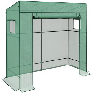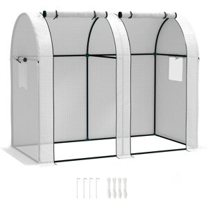 Feature: Lean-to-wall design increases space utilisation and reduces wind impact PE cover prevents UV scorching and prolongs service life A large roll-up door and two mesh windows for easy access and ventilation Overlong cover, guy ropes and ground stakes make the greenhouse more stable and secure Pent top is stylish and prevents rainwater accumulation Convenient to assemble with plastic joints Specification: Colour: White Material: Polyethylene, Steel Overall Dimensions: 196 x 77 x 197/178cm Door Dimensions: 140W x 178Hcm Window Dimensions: 32.5W x 32.5Hcm Edging Width: 10cm Item Label: 84H-063V00WT 1 x Greenhouse 4 x Guy Rope 4 x Ground Stake 1 x Manual