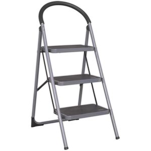 Sealey Step Stool 3-Tread 150kg Capacity - BS EN 14183 Features: EN 14183 Approved steps with 150kg capacity. Tubular metal construction with composite feet for added stability. Features three large anti-slip treads. Foam-cushioned hand rail for added comfort. Also suitable as a stool. Folds flat for easy storage and transportation. Technical Details: • EN 14183 Approved steps with 150kg capacity. • Tubular metal construction with composite feet for added stability. • Features three large anti-slip treads. • Foam-cushioned hand rail for added comfort. • Top Step Height: 710mm. • Also suitable as a stool. • Folds flat for easy storage and transportation. • Model No. ASL23 • Model No. ASL23 Additional Information: • EN 14183 Approved steps with 150kg capacity. • Tubular metal construction with composite feet for added stability. • Features three large anti-slip treads. • Foam-cushioned hand rail for added comfort. • Also suitable as a stool. • Top Step Height: 710mm. • Folds flat for