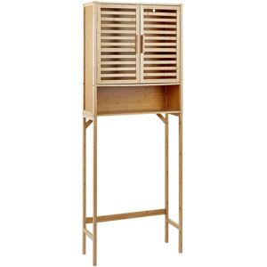 Over the Washer Storage. This minimalistic bathroom over the washer cabinet, crafted from high-quality bamboo, features a light wood finish that adds a natural accent to your decor. With three spacious shelves, it offers ample storage for towels, toiletries, and other essentials, making it both practical and stylish. Ideal for organizing and enhancing small or large bathrooms alike. Details: Product Type: Bathroom Cabinet Style: Boho General Color: Brown Material Type: Wood Main Material: Bamboo Wood Legs material: Wood Shelves number: 3 Doors Opening: Standard Drawers: No Finish: Melamine Key Locked: No Number of Doors: 2 Shelves: Yes Dimensions: Depth: 25 cm Width: 63 cm Height: 167 cm Weight: 8 kg Top Weight Capacity: 3 kg Offer Includes: 1 x Cabinet Key Features: Modern Design, Warm, Elegant Colour, High-Quality Materials, High Durability, Plenty of Storage Space Assembly Information: Full Assembly Required. 20-40 min. Additional Information: Please note that wood is a natural