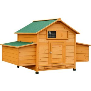 House your chickens in this spacious PawHut chicken coop, which features two nesting boxes for easy egg laying and collection. A slide-out tray and openable tops make cleaning simple, while the water-resistant paint finish protects the coop in various weather conditions. The slanted asphalt roof offers shade and shelter year-round, making it suitable for outdoor use. This comfortable haven is great for 2-4 pets, depending on their size and breed.