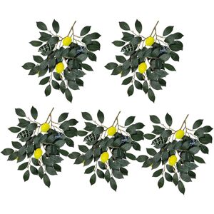 [MATERIAL]: The fake lemon branch is made of high quality silk flower material, bendable stem and branch, durable and lightweight, washable and long term use, feels good and bright color [DIMENSION]: The total size is 16.1 inches in length, 14.2 inches in width; the blueberry stem measures 2.4 x 1.9 inches; the lemon fruit measures 1.6 x 2.4 inches; the bud measures 1.4 x 3.1 inches; the stem of each green leaf measures 3.9 x 5.9 inches (L x H) [DIY CRAFTS]: Can be used to weave garlands, table decorations, wall hangings, wedding arch decorations; or DIY flower and vase arrangement and fruit bonsai accessories [No fading]: This twig stem with lemon and blueberry fruits does not need soil, or sunlight. Easy to clean, well made and blooming forever, no worry about wilting. [APPLICATION]: Perfect for teaching mold, photography props, art painting, office, garden, bookstore, cafe, showroom, hotel, bar, coffee shop, clothing store, wedding party, etc. Color: as shown Material: silk flower
