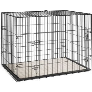 Crate training offers dogs security and gives you peace of mind. This PawHut dog crate is great for small dogs. It features a removable, washable cushion for comfort, an easy-to-clean tray for hygiene and a foldable design with a plastic handle for simple storage and transport. Suitable for training puppies, providing a safe haven for senior dogs or giving you a break, it simplifies life for both pets and owners. Specifications: ● Colour: Black and beige ● Material: Steel, ABS and polyester ● Overall dimensions: 60H x 76L x 53Wcm ● Folded: 8.5H x 76L x 53Wcm ● Door Size: 41H x 35Wcm (Front), 41H x 47Lcm (Side) ● Tray: 3H x 73L x 51Wcm ● Cushion: 1.2H x 71L x 47Wcm ● Bar spacing: 3cm ● Item label: D00-032V00BG Features: ● Front and side doors for easy access, with side-bolt latches to keep them securely inside when needed ● Folds easily with a plastic handle for carrying ● Removable ABS pan for simple cleaning ● Washable soft cushion for added comfort ● Strong metal frame for stability