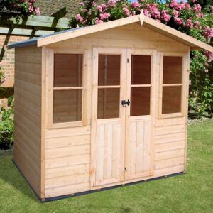 The Shire Haddon Summerhouse is made from tongue and groove boards and comes delivered in full panels for ease of installation. The roof is made from a solid sheet OSB and the building kit comes complete with mineralized felt to cover the roof. The doors are half-glazed to match the surrounding walls and allow in the most of the available sunlight, even with the doors fully opened. All necessary fixtures and fittings come with the delivery, as does a full set of instructions.