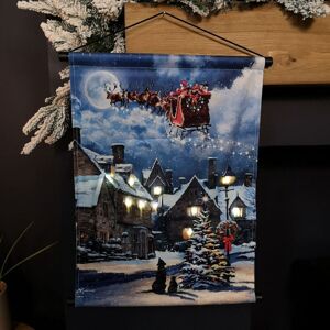 Light up your home this year with this hanging Christmas canvas. This charming decoration will look great part of a festive display or to shine alone whether you choose to hang this above the fireplace or in the hallway to create a dazzling display, this canvas wall art is sure to bring the magical feeling of Christmas to your home and to those who visit. Featuring a wintery snowy scene with a Christmas Robin sitting on a Red post box and a White outer frame on the canvas, this is a licensed print by Richard Macneil. Richard Macneil is a self taught UK artist who specialises in artwork for card designs, homeware and paper products. His paintings use warm brush strokes in the style of impressionism to create carefree and gestural images and his artwork features charming scenes for all occasions. With fibre optic twinkling LED lights. The Christmas tree lights are on a cycle that lights up Blue, then Green turns Red and then repeats. The lights on the main scene remain White LEDs. Just