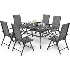 PHIVILLA 6+1 Garden Table and Chairs Set of 6 Patio Seating Folding Chair 6X Adjustable with 7 Seating Positions and Metal Dinning Table Garden