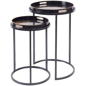 These nested side tables have a beautiful antique patina. Finished by hand, they feature a soft gold frame and removable tray tops, perfect for placing alongside a sofa or armchair. Showcasing a simple, elegant design, this set of two nested side tables have a beautiful antique patina. Finished by hand, they feature a soft gold frame and removable tray tops. Perfect for placing alongside a sofa or armchair. Large table 48 x 48 x 69. Small table 39 x 39 x 57 (WxDxH cm) Features: Base Material: Iron/Glass/Plastic Color: Black/Gold Texture/Finish: Hand Finished Self Assembly: No Room: Living Room Dimensions & Weight: Dimension: L47 x W47 x H68 cm Weight: 5.5 kg . Coral Design Set of 2 Side Tray Tables . Delivery is free to the UK Mainland excluding the following postcodes: AB10-30, AB32, AB39, IV1-20, IV30-36, KW1-14, PH19-32, PH34-35, TR1-20, TR26-27, IV21-IV28, PA21-PA38, PH33, PH36-PH41, PH49-PH50, IV40-IV56, KA27-KA28, PA20, PA41-PA80, PH42-PH44, KW, AB, DG5-9, DG13-14, IV1-13,