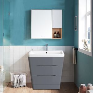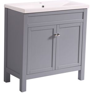This high-quality floor standing basin vanity unit offers a stunning classic look for your bathroom with this traditional looking unit, it features ceramic basin which looks elegant and classical, this traditional design sink unit is a classical addition to complement any bathroom. All of vanity cabinet sink unit furniture comes with a manufacturer-leading 10-year guarantee. Product Features & Benefits: Traditional design. Dimensions: (W x D x H): 615 x 400 x 840 mm Luxurious Grey finish Soft-closing technology on the doors. Two internal shelves Aluminium handles. Single tap hole ceramic basin Fully assembled (simply place the basin on the cabinet and seal the edges). 10 year warranty Tap & waste are not included. Note: Please note that the actual colour of the item may be slightly different than what is shown on the photos.