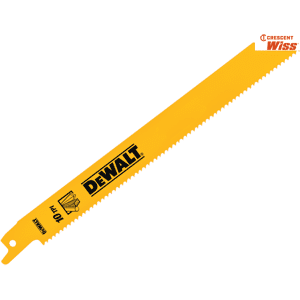 DeWalt: Bi-Metal General Purpose Reciprocating Blade 203mm x 10 TPI (Pack 5) DEWDT90383QZ DEWALT Fast Cut General Purpose Reciprocating Blades have a bi-metal construction, a combination of HCS and HSS for greater flexibility. Adjusted tooth setting for maximum durability and M2 HSS cutting edges for sharpness. The universal shank fits all major brands including DEWALT, Bosch, Hitachi, Flex, Makita, Metabo and Skil. Suitable for wood, ferrous and non-ferrous metals, sheet steel, pipes and profiles. Specification Length 203mm Pitch 2.5mm TPI 10 Pack Quantity 5 MPN: DEWDT90383QZ EAN: 5054905250300 Bi-Metal General Purpose Reciprocating Blade 203mm x 10 TPI (Pack 5) DEWDT90383QZ Attributes: Applications: Metal & Wood Length: 203mm MFR Part No.: DEWDT90383QZ DEWDT90383QZ Pack Quantity: 5
