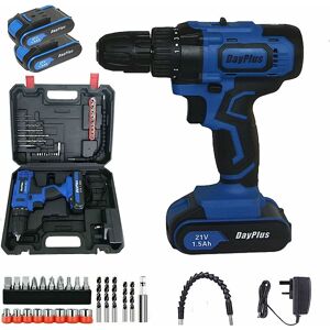 Specifications: Rate Torque 45 N.m Powerful 21V lithium-ion 2x1500 mAh rechargeable battery Max drilling capacity (steel): 8mm Max drilling capacity (wood): 23mm Torque settings: 18+1 No load speed: 0-350/1400rpm Keyless chuck 0.8 - 10mm LED light for dim lighting Built in tail hammer and magnet function 90 Minutes Quick Battery charge, could keep on working 65 Minutes Net Weight: 2.52 KGS Case's Size: 32x9.5x25.7CM 2 Speed control and forward/reverse switching Heads include, cross-head and slot-headed Lightweight, small and easy to use Packages?Includes: 1x?Cordless?Drill 2 x Battery 1?x?Extended?Bar 1x?Flexible?Hex?Shaft 1x?Carrying?Case 9?x?Drill?Pieces 18?x?Screw?Driver?Bits 1 x Charger
