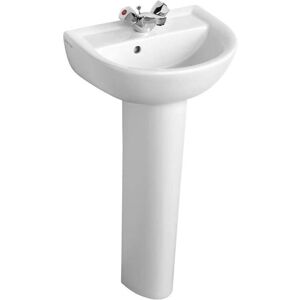 Features and Benefits: Includes full length pedestal to conceal the pipe work Quality white finish gives a clean appeal and the illusion of more space Supplied with a pre-drilled single tap hole, suitable for a mono basin mixer Manufactured from Vitreous China extremely durable and long-lasting Suitable for domestic and commercial use Features space saving design Easy to install and clean Guarantee: Lifetime (2 Year on all spare parts which are subject to normal wear and tear from the proof of purchase date. Does not cover consequential damage or loss) Important Information: Waste and Fixings sold separately (Available in our Store) Basin Type Full Pedestal Basin Shape Curved Basin Tap Holes 1 Tap Hole Location Central Includes Overflow? Yes Basin Total Height 855mm Basin Width 500mm Basin Projection 440mm Basin Bowl Height 190mm Basin Bowl Width 400mm Basin Bowl Projection 260mm Wall to Waste Outlet 210mm Wall to Tap Hole 70mm Brand Armitage Shanks Collection Sandringham 21 Style
