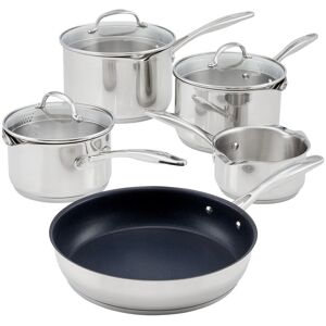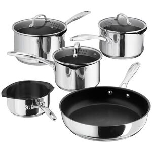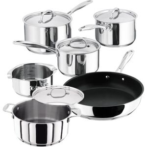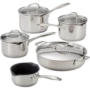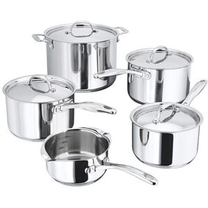 PROFESSIONAL QUALITY PAN SET WITH HIGH-PERFORMING TEFLON® PLATINUM PLUS - elegant, high-sided pans made from mirror-polished stainless steel with secure, riveted stainless steel handles cast in a wishbone design to reduce heat conduction Frying pan has triple-layer, scratch-resistant Teflon® Platinum Plus Non-Stick coating that’s guaranteed for 10 years. Set Contains: 1 x 14cm Milk Pan 1 x 26cm Non-Stick Frying Pan 1 x 16cm Draining Saucepan with Strainer Lid 1 x 18cm Draining Saucepan with Strainer Lid 1 x 20cm Draining Saucepan with Strainer Lid Stellar
