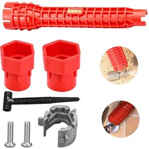 【Scope of delivery】The set includes: 1 open-end wrench, 1 pipe nut and 2 disassembly accessories, 1 hole support rod, and 3 screws. 【Extra-long wrench design】The extended design of the sink wrench transforms hard-to-reach fastening nuts on faucets, shower heads, and ball valves, making it easier to use and turn in tight spaces. The non-slip handle is designed according to ergonomic principles, and the force point is stable. It is sufficient to handle all kinds of plumbing accidents that occur in daily life. 【Easy to use】The knurled design of the sink wrench allows easy access to existing supply lines and is easy to turn and disassemble. By inserting a shank into the tailstock, the faucet wrench can be easily turned even at difficult angles without scratching the chrome plating. Simply snap it into place and turn quickly. Then replace the nut mounted on the faucet. Wear-resistant material: The sink wrench is made of high-strength plastic inserts and double aluminum alloy inserts, which