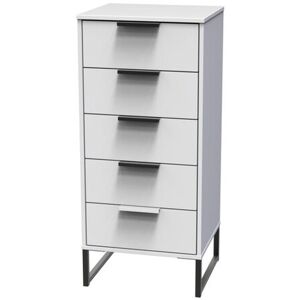 This 5 drawer chest of drawers is practical and stylish. Perfect for any home as a free standing storage unit This furniture set is popular for its Scandinavian style and industrial feel. Constructed from sturdy materials with metal handles and frame legs. Elevate your space with this range, featuring plenty of storage, so it's incredibly practical for keeping rooms clutter free and tidy. All our furniture is made in the United Kingdom, to the highest quality. Brayden Studio Colour: White Matt
