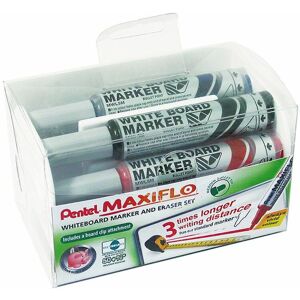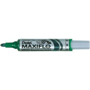 Pentel: Pentel Whiteboard Marker Bullet Tip 3mm Line Red (Pack 12) Pentel Whiteboard Marker Bullet Tip 3mm Line Red (Pack 12) The Pentel Red MWL5M Maxiflo dry wipe white board marker has a medium bullet tip which provides long-lasting ink and vivid colours. Its suitable for classroom or meeting presentations on white or porcelain boards. Colour is especially important when making presentations or simply for general messages and the strength and depth of Maxiflo stands out from the crowd. Its a high quality, long lasting dry wipe marker. It has a unique pump action system to replenish ink supply if the tip has dried out. Its medium bullet tip provides an approx. line width of 3mm MPN: 17448PE EAN: 4902506050250 Pentel Whiteboard Marker Bullet Tip 3mm Line Red (Pack 12) Attributes: Application: Drywipe Boards & Flipcharts Ink Colour: Red Ink Type: Liquid Ink Liquid Ink Line Width: 3mm MFR Part No.: 17448PE Pen Type: Drywipe Markers Tip Style: Bullet Tip Bullet Tip Warranty: 5 Year