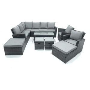This classic high back sofa set can accomodate 12 peoples and has a comfortable and soft back, made of new premium dark grey mixed PE rattan Set Dimensions: • 1x 3 Seater sofa with two arm : 170L x 69D x 79H cm • 1x 3 Seater sofa with single arm: 160L x 69D x 79H cm • 2x Big Footstool :65L x 65W x 34H cm • 2x Small fully assembled footstools :40L x 40W x 34H cm • 2x Chair: 74W x 69D x 79H cm • 1x rising dining table: 140L x 80W x 68/48H cm (height up 68,down 48) Dark grey mixed rattan with dark grey fabric .Color may Vary due to light or monitor .we are unable to return the item due to this problem .Please Consult Before Purchase if you have requirement on color saturation. Table Can Be Used Both For Coffee Or Dining Table,Great Price Compared With Other Online Or Offline Store For Rising Table Set Items Comes Flat Packed And Easy to Assemble,Sturdy Galvanized Steel Tube Metal Frames With Powder Coating To Prevent Rust, Ergonomic High Back And Declining Design For More Comfort Flat PE