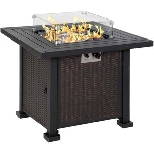 Enjoy the ultimate backyard ambiance year-round with this cozy and functional outdoor furniture that has both a fire pit and dining table in one. It features a classic rattan design body that cleverly conceals the propane tank inside. Complete with a 50000 BTU burner, you can enjoy all the pleasures of a charming flame without worrying about messy ashes. Whether it's on a porch, patio, or in your garden, the patio fire pit table makes a classy addition to your home. Classic metal frame with rattan design fire pit, suitable for any outdoor space. The 50000 BTU stainless steel burner, is heat-resistant for added security. Comes with a lid which can be used as a table. Pulse ignition system with an adjustable flame for easy lighting (AAA battery required). Transparent glass beads are included to beautifully accent the flames. Glass screen protects the flame from the wind. Practical door to conceal and allow easy access to the propane tank. Brayden Studio